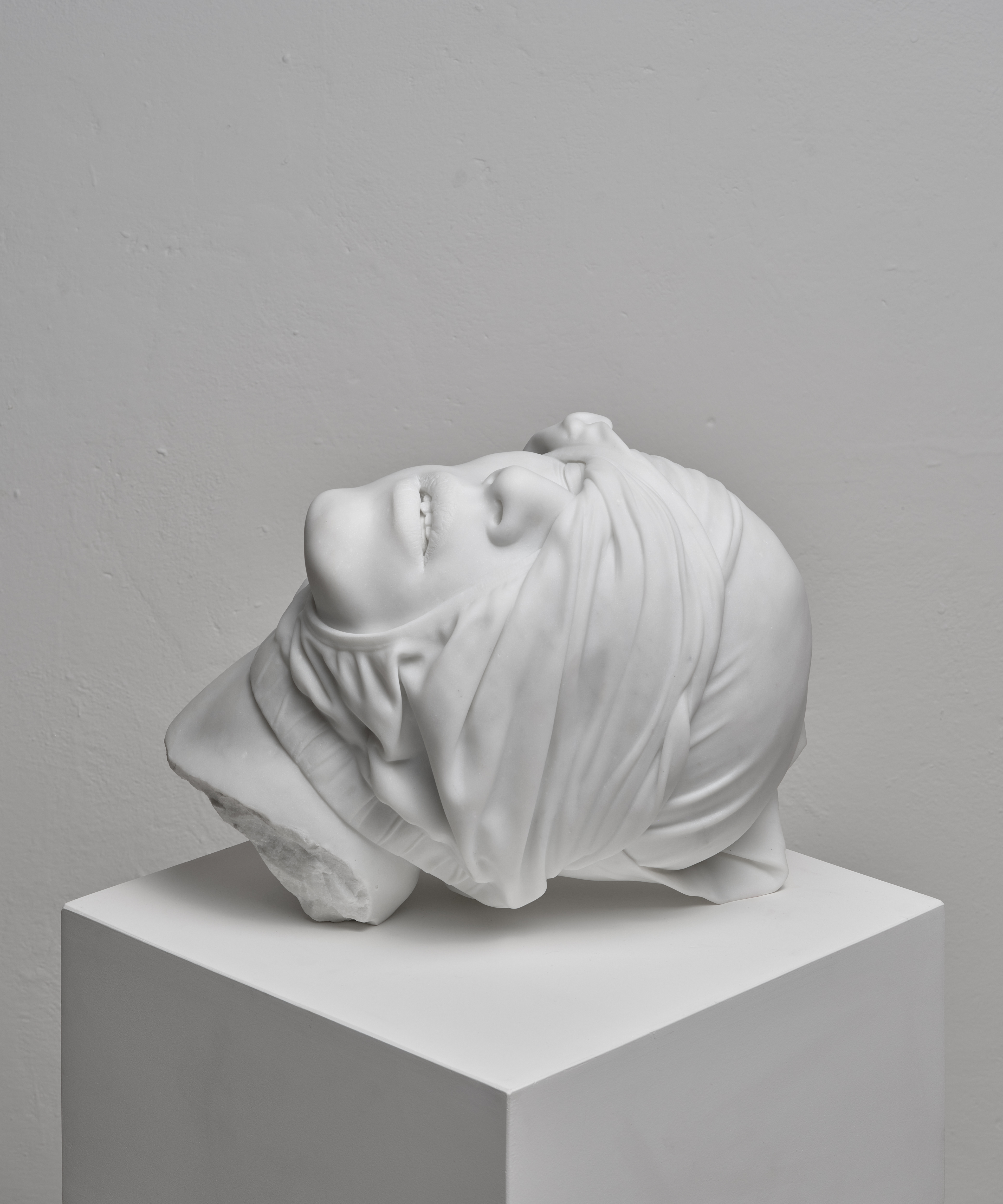 Action 241: Study of the Head as Cultural Artefact Hand carved and polished Bianco Michelangelo marble 32 x 40.8 x 31.2 cm 2023